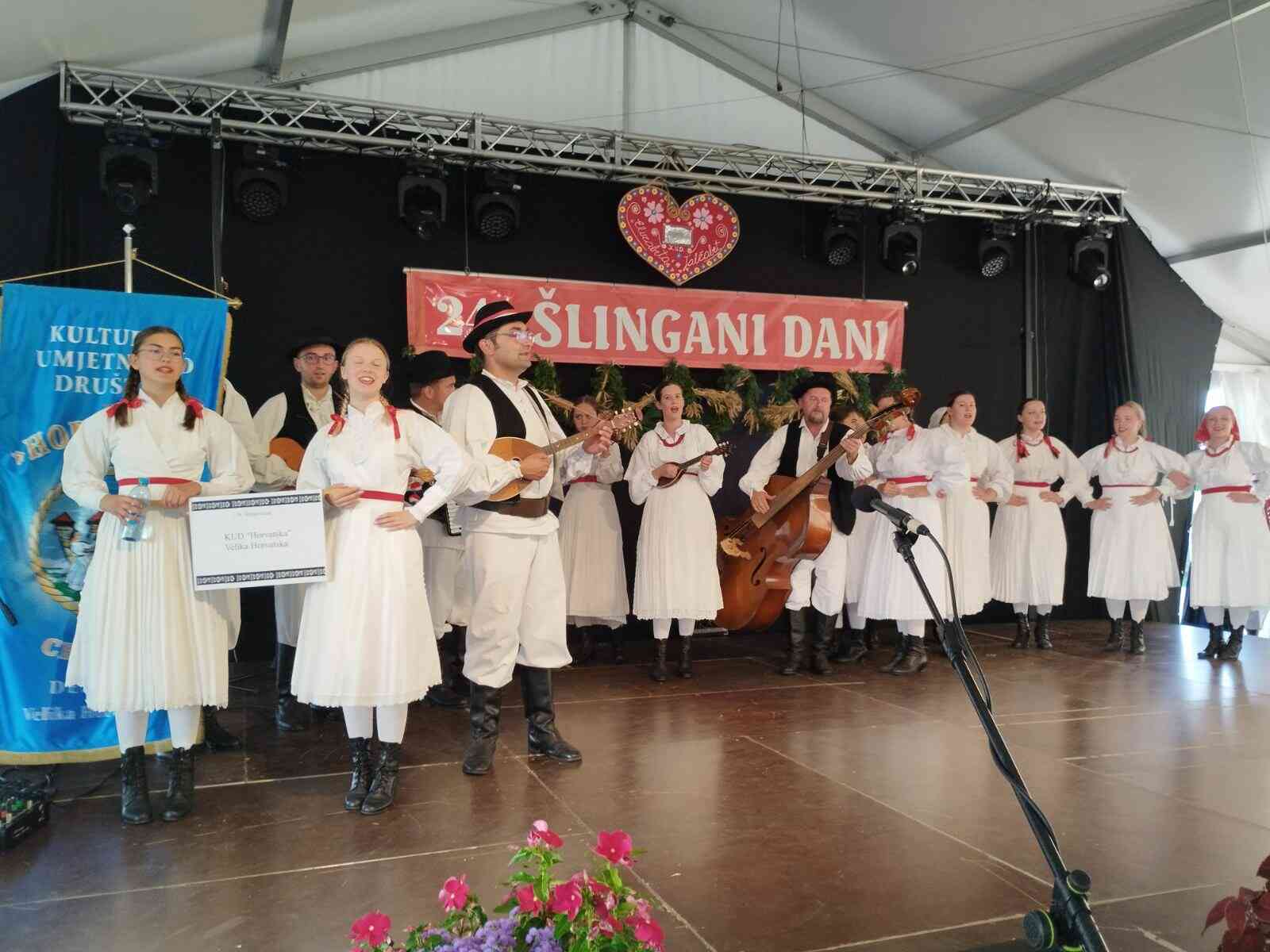 JALŽABET (9. 7. 2023.) – Tradicionalna manifestacija „Šlingani dani“ održana je 24. put s bogatim kulturno-umjetničkim programom. I dok je petak (7. srpanj) bio rezerviran za zabavni program, u subotu  (8. srpnja) na red su došli folkloraši koji su u Jalžabet stigli iz svih krajeva Hrvatske, od Vukovara, Ludbrega, Donje Voće do Kotoribe. Na ovogodišnjim Šlinganim danima sudjelovali su članovi KUD „Horvatska“ (Velika Horvatska), KUD „Kolo“ (Vukovar), KUD „Anka Ošpuh“ (Ludbreg), KUD „Kotoriba“ (Kotoriba), KUD „Voća“ (Donja Voća), KUD „Bistra“ (Gornja Bistra) te domaćina, KUD-a „Elizabeta“ iz Jalžabeta.